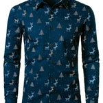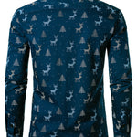 Meeste Jõulupuu Põder Prindiga Hingav Tumesinine Pikakä sleeves Särk