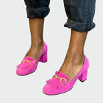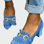 Erilise iseloomu ja elegantsete detailidega kontsad, mis paistavad silma. Pealmine metallkaunistus lisab luksust, samas kui dekoratiivsed narmastega paneelid kuid annavad retrohõngulise, samas moodsa esteetika. Keskmise kõrgusega kontserdi tagab mugavuse ja väljanägemise, muutes need ideaalseks valikuks nii igapäevaseks kui ka elegantsemaks välimuseks.