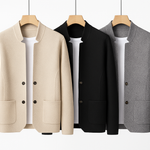 Kootud tekstuur toob kerguse ja struktuuri, säilitades samas laitmatu kuju. Kõrge kaelus annab modernse ja eristuva ilme, samas kui esine nööpide ja minimalistlike klapiga taskute sulgemine lisab funktsionaalsust tagasihoidliku elegantsi kaudu.