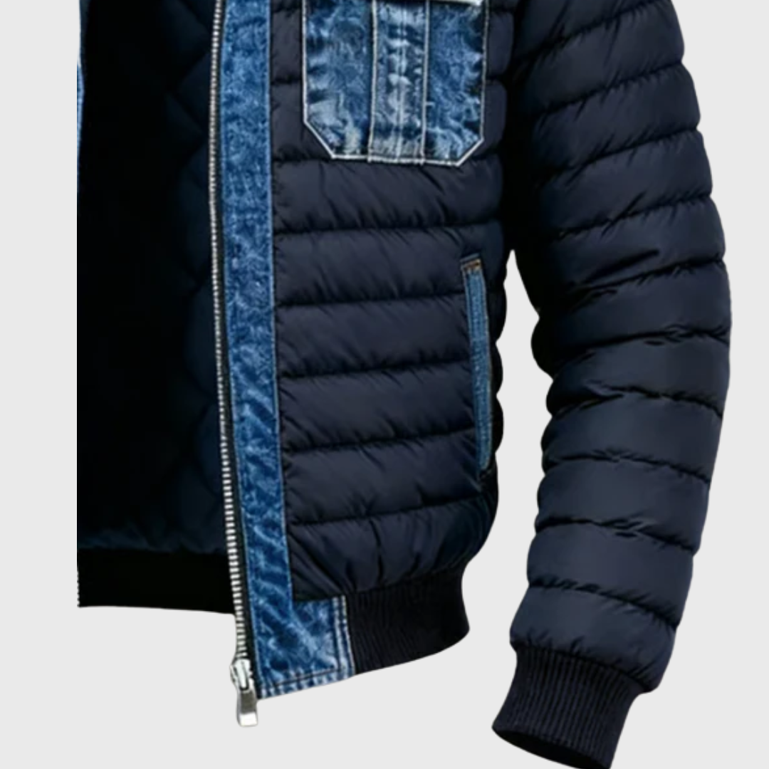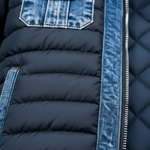See hübriidne jakk ühendab klassikalise teksailme ja kerge polsterduse, pakkudes nii stiili kui ka mugavust igapäevaseks kandmiseks.
