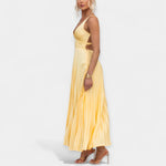 Plisseeritud maksikleit kollases värvitoonis