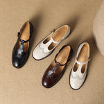 Need Mary Janes'id esitlevad klassikalist T-bar rihma brogue-stiilis lõigetega, mis lisab võlu. Mandli kujuline varvas ja kindel pandla sulgemine loovad meeldiva ja mugava istuvuse. Modestne plokknina ja sujuv õmblusdetail muudavad need igapäevaseks elegantsiks.